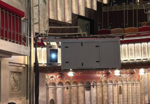 Installing high-brightness projection in a Victorian-era theatre introduced additional constraints around space, weight, and noise. Projectors had to be carefully positioned at front-of-house, in and around the audience, requiring careful consideration of sightlines and acoustic impact.